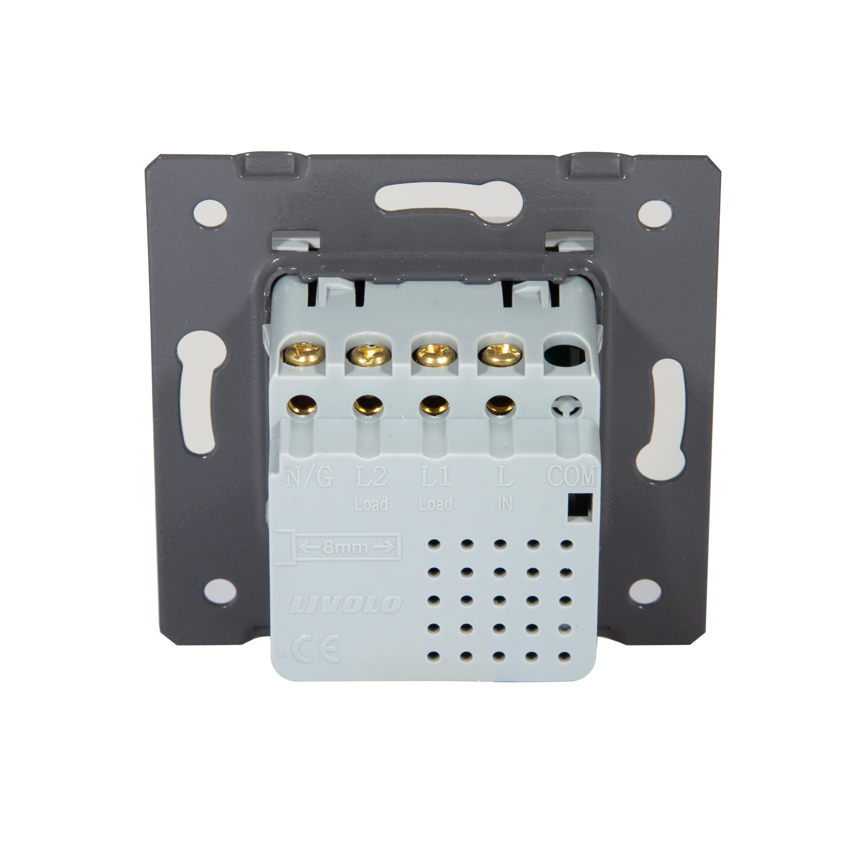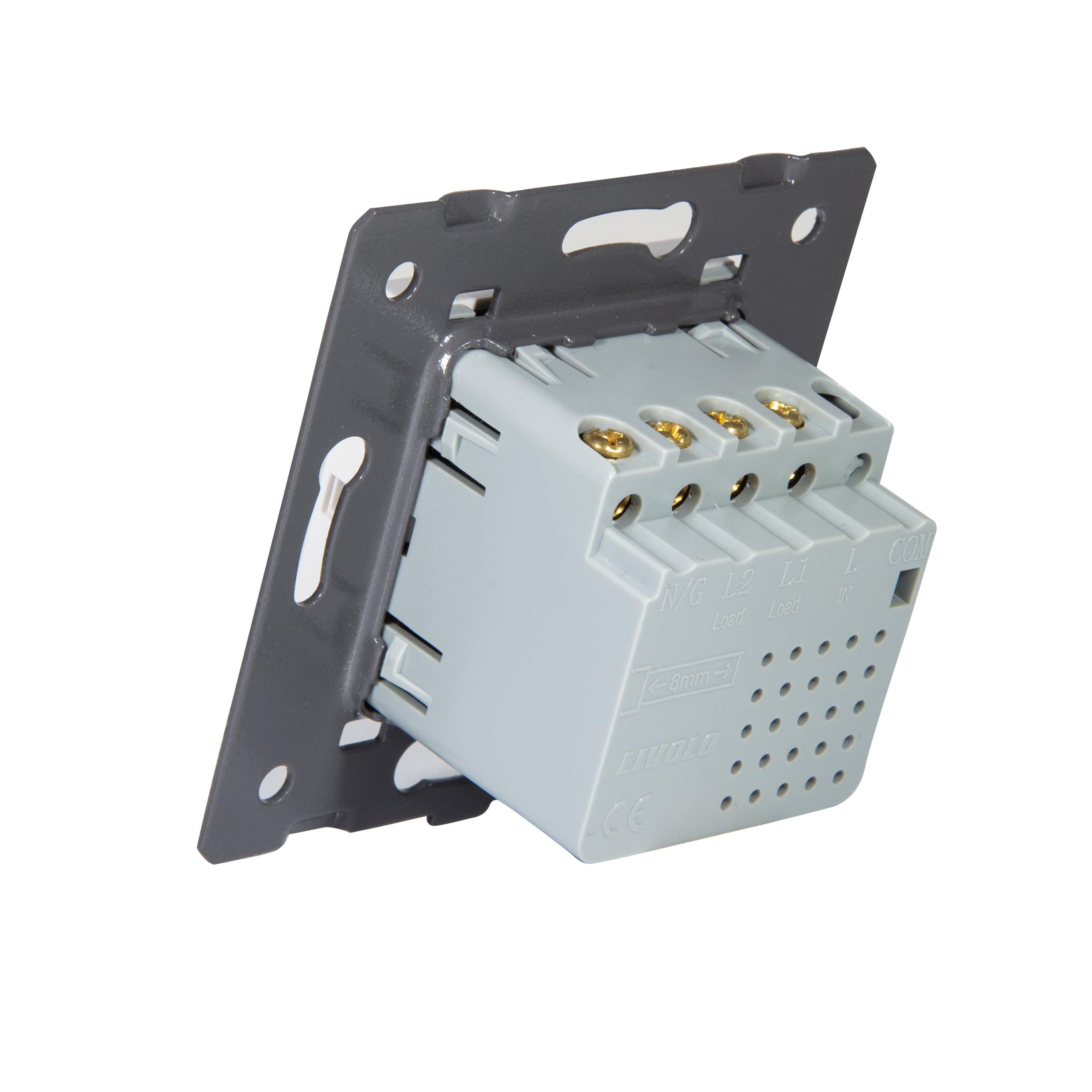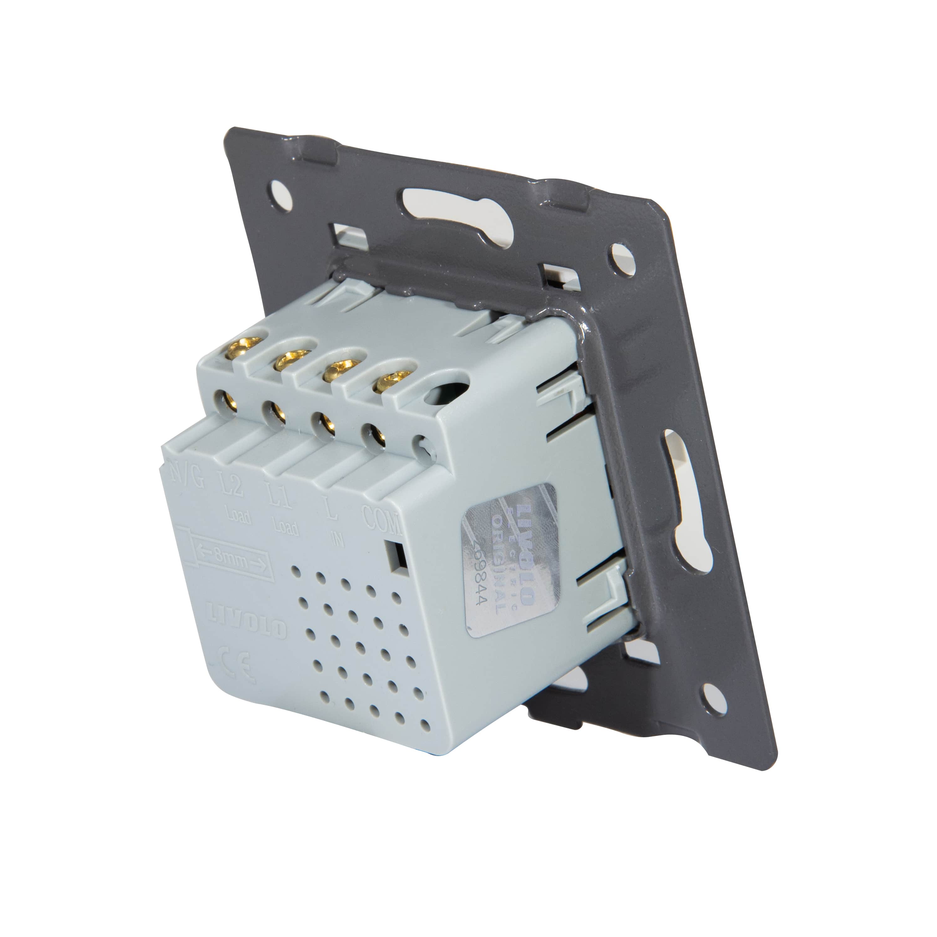 Wkład włącznika roletowego Wifi/ZigBee jest wykonany w nieco innej formie niż pozostałe włączniki dotykowe. Modułu nie montujemy w panelu tylko w ramce Livolo GPF - jak do gniazdka wtykowego.