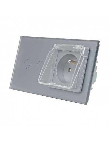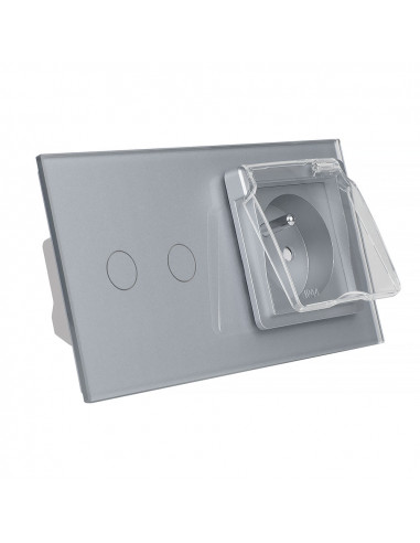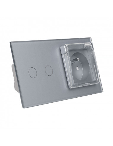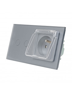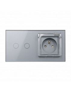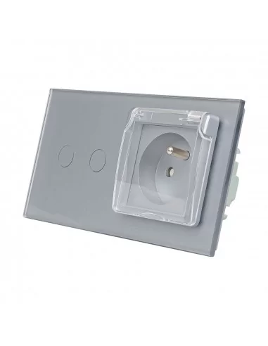 Gniazdo hermetyczne z bolcem 230V 16A z włącznikiem dotykowym podwójnym Livolo Szary