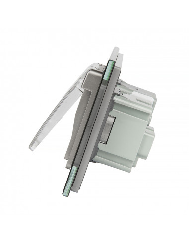 Gniazdo posiada standardowe uziemienie w bolcu. Wszystkie urządzenia oferowane na rynku europejskim i wymagające uziemienia powinny być wyposażone we wtyczki pasujące do tego standardu. Front wykonany z hartowanego szkła kryształowego, niezwykle łatwy do utrzymania w czystości. Idealnie wpasowuje się w nowoczesne oraz eleganckie wnętrza. Z poziomu jednego szklanego panelu możesz sterować zarówno oświetleniem, jak i wykorzystać wtyczkę do podłączenia urządzeń AGD. Gniazdko dodatkowo wyposażone jest w nakładkę hermetyczną, która skutecznie zabezpiecza je przed zachlapaniem. Podwójny włącznik wchodzący w skład zestawu pozwala na niezależne sterowanie dwoma źródłami światła.