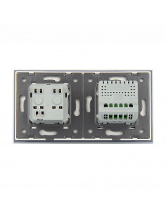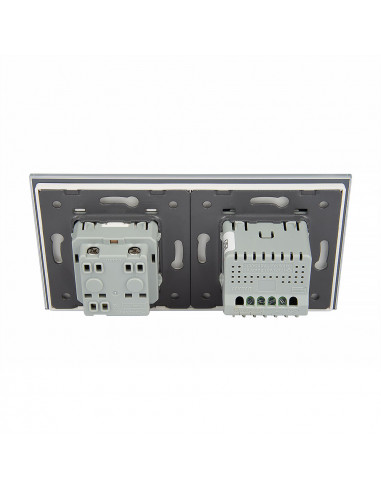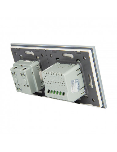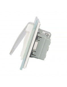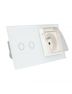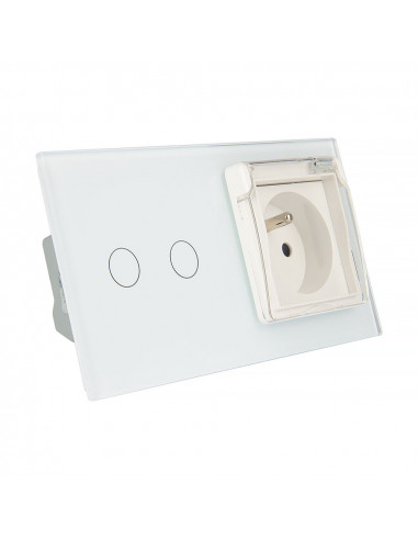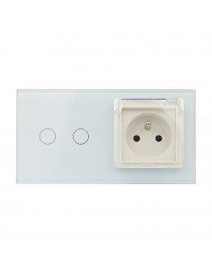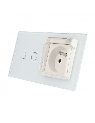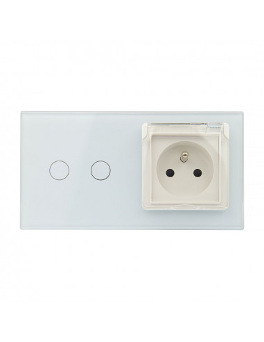 Zestaw składa się z eleganckiego, szklanego panelu dotykowego Livolo, jednego włącznika podwójnego WW-C702, jednego gniazda z bolcem WG-71FR, dopasowanego kolorystycznie do szklanego frontu oraz klapki hermetycznej.