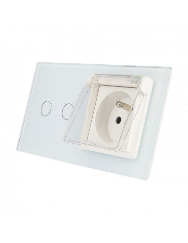 Gniazdo hermetyczne z bolcem 230V 16A z włącznikiem dotykowym podwójnym Livolo Biały