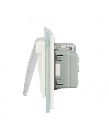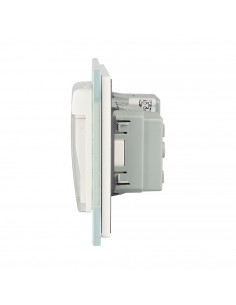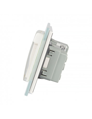 Gniazdo posiada standardowe uziemienie w bolcu. Wszystkie urządzenia oferowane na rynku europejskim i wymagające uziemienia powinny być wyposażone we wtyczki pasujące do tego standardu. Front wykonany z hartowanego szkła kryształowego, niezwykle łatwy do utrzymania w czystości. Idealnie wpasowuje się w nowoczesne oraz eleganckie wnętrza. Z poziomu jednego szklanego panelu możesz sterować zarówno oświetleniem, jak i wykorzystać wtyczkę do podłączenia urządzeń AGD. Gniazdko dodatkowo wyposażone jest w nakładkę hermetyczną, która skutecznie zabezpiecza je przed zachlapaniem. Podwójny włącznik wchodzący w skład zestawu pozwala na niezależne sterowanie dwoma źródłami światła.