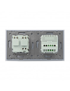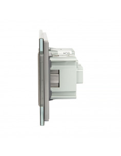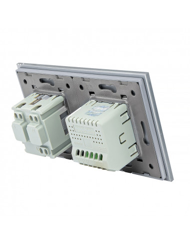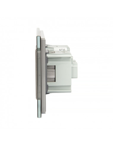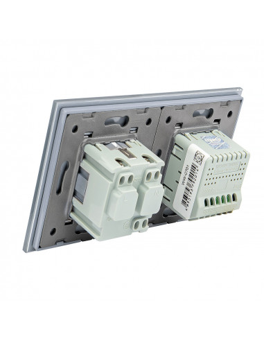 Takie połączenie umożliwia obsługę jednego punktu świetlnego oraz podłączenie urządzenia elektrycznego przy użyciu jednego, estetycznego panelu wykonanego ze szkła. Całość charakteryzuje się nowoczesnym wyglądem, wysoką funkcjonalnością oraz wygodą użytkowania. Zestaw przeznaczony jest do montażu w dwóch standardowych puszkach elektrycznych o typowym rozstawie lub w jednej puszce zespolonej, mieszczącej dwa mechanizmy. Gniazdo wyposażone jest w boczne uziemienie typu Schuko, w pełni kompatybilne ze wszystkimi wtyczkami.