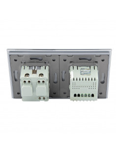 Zestaw składa się z eleganckiego, szklanego panelu dotykowego Livolo, jednego włącznika dotykowego pojedynczego WW-C701 oraz jednego wkładu gniazda pojedynczego z uziemieniem bocznym WG-71EU-S, dopasowanego kolorystycznie do szklanego frontu.