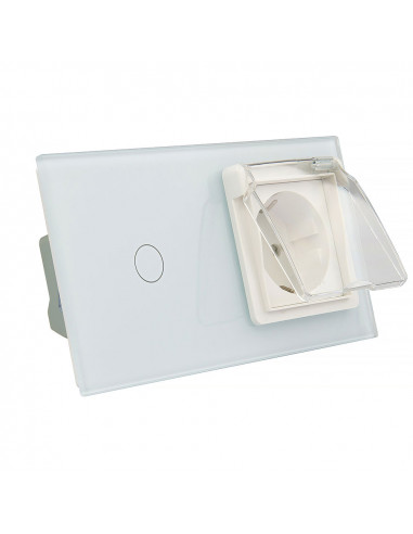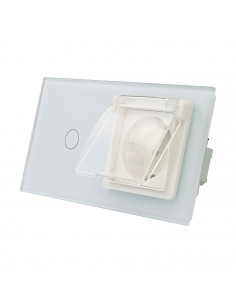 Zestaw składa się z eleganckiego, szklanego panelu dotykowego Livolo, jednego włącznika dotykowego pojedynczego WW-C701, jednego wkładu gniazda pojedynczego z uziemieniem bocznym WG-71EU-S, dopasowanego kolorystycznie do szklanego frontu oraz jednej klapki hermetycznej.