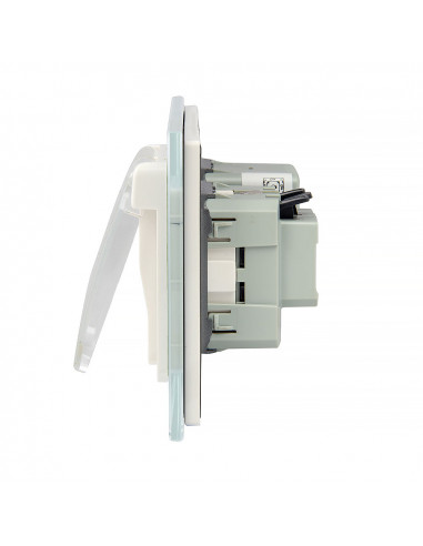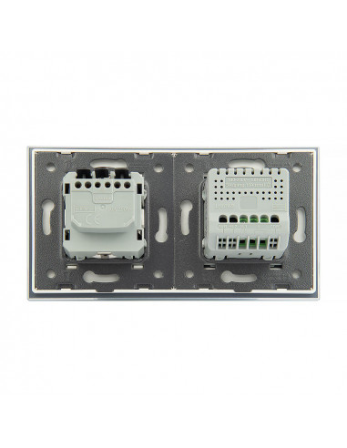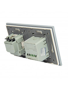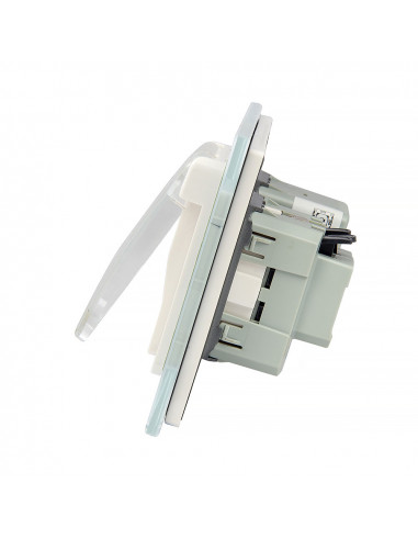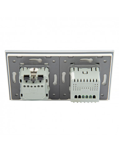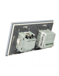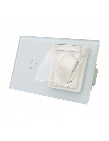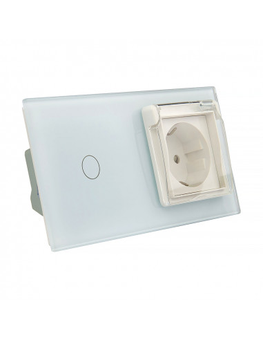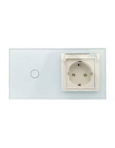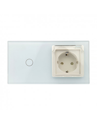 Takie połączenie umożliwia obsługę jednego punktu świetlnego oraz podłączenie urządzenia elektrycznego przy użyciu jednego, estetycznego panelu wykonanego ze szkła. Całość charakteryzuje się nowoczesnym wyglądem, wysoką funkcjonalnością oraz wygodą użytkowania. Zestaw przeznaczony jest do montażu w dwóch standardowych puszkach elektrycznych o typowym rozstawie lub w jednej puszce zespolonej, mieszczącej dwa mechanizmy. Gniazdo wyposażone jest w boczne uziemienie typu Schuko, w pełni kompatybilne ze wszystkimi wtyczkami.