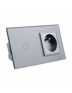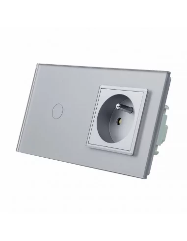 Włącznik dotykowy pojedynczy i gniazdo z bolcem - Szary