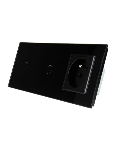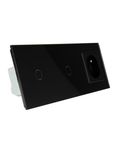 Włącznik dotykowy podwójny i jedno gniazdko z bolcem Czarny