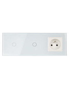 Włącznik dotykowy podwójny i jedno gniazdko z bolcem Biały