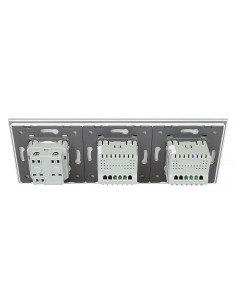 Zestaw składa się z eleganckiego, szklanego panelu dotykowego Livolo, dwóch włączników pojedynczych WW-C701, jednego wkładu gniazda pojedynczego WG-71FR, dopasowanego kolorystycznie do szklanego frontu.