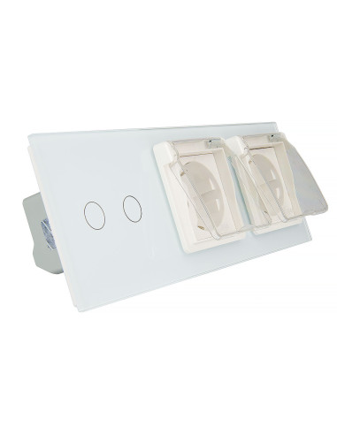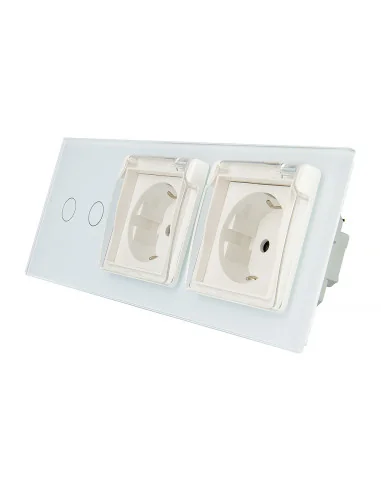 Włącznik dotykowy podwójny + dwa gniazdka hermetyczne LIVOLO 702GG Biały