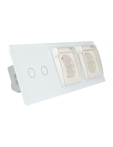 Włącznik dotykowy podwójny i dwa gniazdka hermetyczne