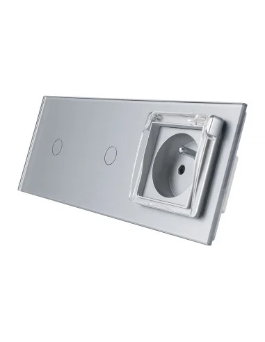 Livolo włącznik 1+1 z hermetycznym gniazdem z bolcem Szary