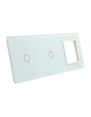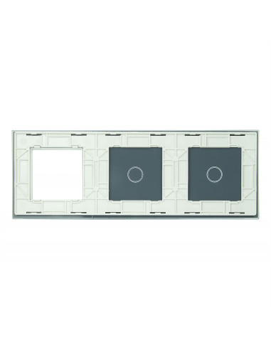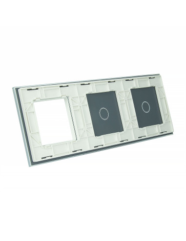 Model ten pozwala na elastyczną konfigurację systemu oświetlenia poprzez zastosowanie dwóch, dowolnych włączników Livolo z pojedynczym przyciskiem oraz jednego z wybranych urządzeń dopasowaneg do otworu znajdującego się w panelu. Mogą to być m.in. gniazda elektryczne Livolo, moduły termostatów, gniazda sieciowe, antenowe oraz inne kompatybilne akcesoria dostępne w naszej ofercie. Takie rozwiązanie umożliwia pełną personalizację sterowania oświetleniem oraz tworzenie praktycznych zestawów z różnymi mechanizmami Livolo w jednym, spójnym wizualnie elemencie. Panel przeznaczony jest do montażu w trzech standardowych puszkach elektrycznych.