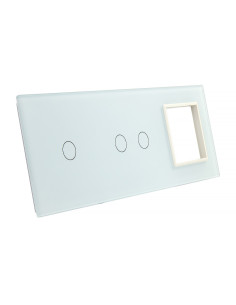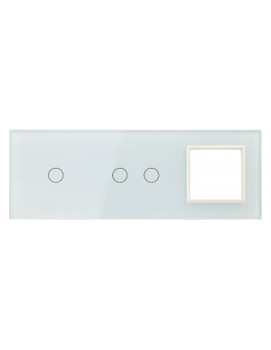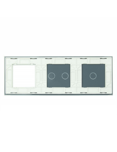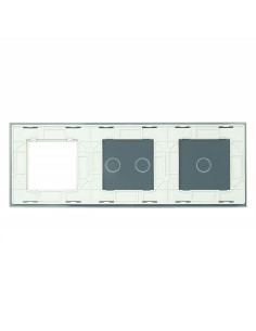 Model ten pozwala na elastyczną konfigurację systemu oświetlenia poprzez zastosowanie jednego, dowolnego włącznika Livolo z pojedynczym przyciskiem, jednego dowolnego włącznika Livolo z dwoma przyciskami oraz jednego z wybranych urządzeń dopasowanego do otworu znajdującego się w panelu. Mogą to być m.in. gniazda elektryczne Livolo, moduły termostatów, gniazda sieciowe, antenowe oraz inne kompatybilne akcesoria dostępne w naszej ofercie. Takie rozwiązanie umożliwia pełną personalizację sterowania oświetleniem oraz tworzenie praktycznych zestawów z różnymi mechanizmami w jednym, spójnym wizualnie elemencie. Panel przeznaczony jest do montażu w trzech standardowych puszkach elektrycznych.