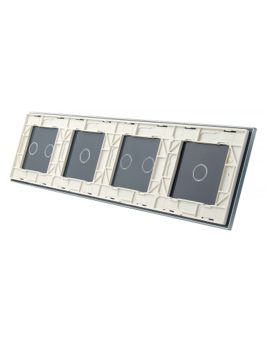 Model ten umożliwia wygodną konfigurację systemu oświetlenia poprzez połączenie dwóch włączników z jednym przyciskiem oraz dwóch włączników z dwoma przyciskami - w układzie naprzemiennym. Takie rozwiązanie pozwala na pełną personalizację sterowania światłem oraz na tworzenie funkcjonalnych układów z innymi mechanizmami Livolo w jednym estetycznym elemencie. Panel przystosowany jest do montażu w czterech puszkach elektrycznych.