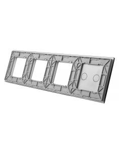 Panel ma miejsce na na jeden dowolny włącznik Livolo z podwójnym przyciskiem oraz trzy otwory na urządzenia takie jak gniazdka, termostaty, czy gniazdka TV lub sieciowe - dostępne w naszej ofercie. Panel jest przystosowany na 4 puszki elektryczne o standardowym rozstawie lub jedną poczwórną zespoloną puszkę.