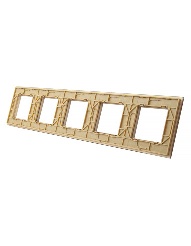 Ramka GPF ma pięć otworów na urządzenia takie jak gniazdka, termostaty, czy gniazdka TV lub sieciowe. Całość do montażu w pięciu puszkach elektrycznych.