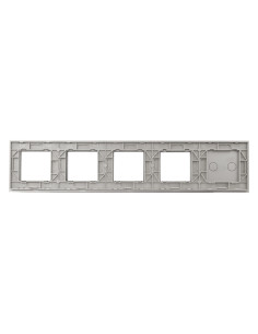 Panel ma miejsce na jeden dowolny wkład włącznika z podwójnym przyciskiem oraz cztery otwory na urządzenia takie jak gniazdka, termostaty, czy gniazdka TV lub sieciowe. Całość do montażu w pięciu puszkach elektrycznych.