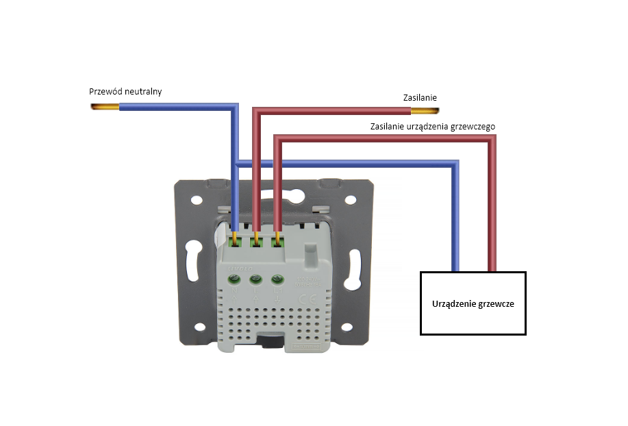 Poniżej przedstawiamy schemat podłączenia termostatu pokojowego. Z racji tego, że w naszym asortymencie znajdują się tylko produkty Livolo, schemat dotyczy właśnie tego termostatu. Do podłączenia termostatu potrzebujemy trzech żył.