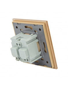 Zestaw składa się z eleganckiej, szklanej ramki Livolo, jednego wkładu gniazda pojedynczego WG-71FR- z uziemieniem w bolcu, dopasowanego kolorystycznie do szklanej ramki oraz klapki hermetycznej. Uziemienie w bolcu jest kompatybilne z każdym rodzajem wtyczek dostępnym na rynku europejskim.
