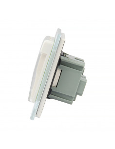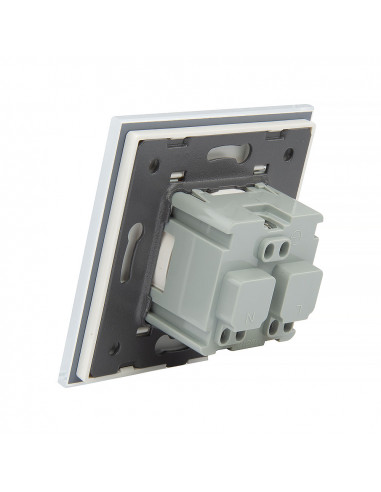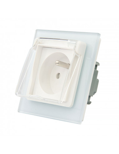 Zestaw składa się z eleganckiej, szklanej ramki Livolo, jednego wkładu gniazda pojedynczego WG-71FR- z uziemieniem w bolcu, dopasowanego kolorystycznie do szklanej ramki oraz klapki hermetycznej. Uziemienie w bolcu jest kompatybilne z każdym rodzajem wtyczek dostępnym na rynku europejskim.