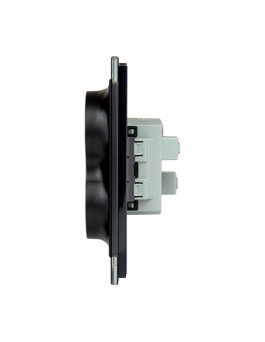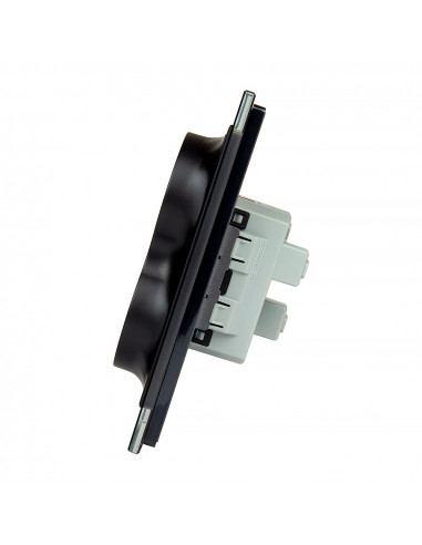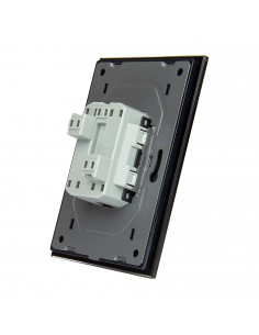Gniazdo podwójne Livolo mieści się w jednej, standardowej puszce elektrycznej. Dzięki temu możemy wpiąć do niego dwie wtyczki elektryczne z maksymalnym wykorzystaniem przestrzeni.