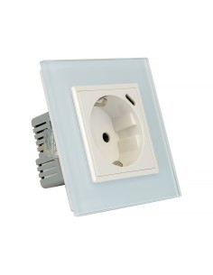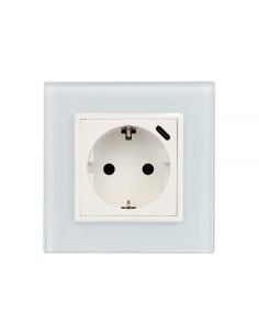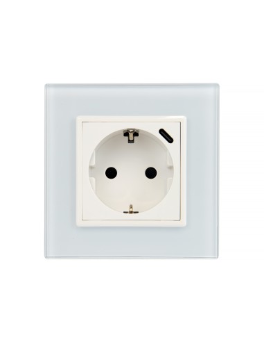 Zestaw składa się z pojedynczej ramki szklanej Livolo GPF-1 oraz modułu gniazda wtykowego z uziemieniem bocznym typu Schuko. Dodatkowo gniazdo w prawym górnym rogu posiada wejście w standardzie USB C, które umożliwia ładowanie urządzeń elektronicznych bez konieczności zajmowania wtyku gniazdka. To świetne rozwiązanie w miejscach, w których nie mamy możliwości zainstalowania podwójnych gniazdek. Moduł gniazda jest dopasowany kolorystycznie do szklanej ramki. Całość przystosowana do montażu w pojedynczej, standardowej puszce elektrycznej.