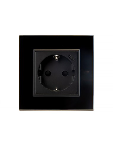 Zestaw składa się z pojedynczej ramki szklanej Livolo GPF-1 oraz modułu gniazda wtykowego z uziemieniem bocznym typu Schuko. Dodatkowo gniazdo w prawym górnym rogu posiada wejście w standardzie USB C, które umożliwia ładowanie urządzeń elektronicznych bez konieczności zajmowania wtyku gniazdka. To świetne rozwiązanie w miejscach, w których nie mamy możliwości zainstalowania podwójnych gniazdek. Moduł gniazda jest dopasowany kolorystycznie do szklanej ramki. Całość przystosowana do montażu w pojedynczej, standardowej puszce elektrycznej.