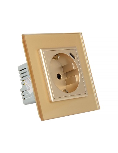 Zestaw składa się z pojedynczej ramki szklanej Livolo GPF-1 oraz modułu gniazda wtykowego z uziemieniem bocznym typu Schuko. Dodatkowo gniazdo w prawym górnym rogu posiada wejście w standardzie USB C, które umożliwia ładowanie urządzeń elektronicznych bez konieczności zajmowania wtyku gniazdka. To świetne rozwiązanie w miejscach, w których nie mamy możliwości zainstalowania podwójnych gniazdek. Moduł gniazda jest dopasowany kolorystycznie do szklanej ramki. Całość przystosowana do montażu w pojedynczej, standardowej puszce elektrycznej.