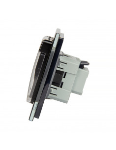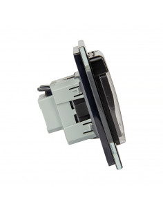 Zestaw składa się z eleganckiej, szklanej ramki Livolo, pojedynczego wkładu gniazda Schuko WG-71EU-S z bocznym uziemieniem, dopasowanego kolorystycznie do ramki, oraz praktycznej klapki hermetycznej. Całość tworzy spójny i estetyczny element, który doskonale wpisuje się zarówno w nowoczesne, jak i klasyczne aranżacje wnętrz.