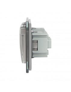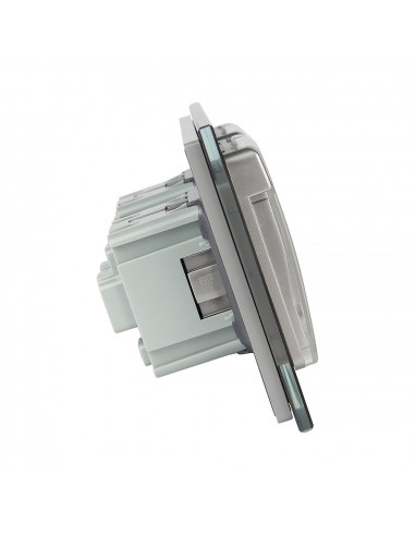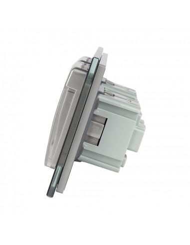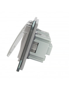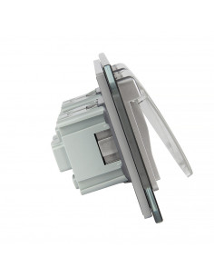 Zestaw składa się z eleganckiej, szklanej ramki Livolo, dwóch wkładów gniazda pojedynczego WG-71EU-S z uziemieniem bocznym, dopasowanych kolorystycznie do szklanej ramki oraz dwóch klapek hermetycznych. Boczne uziemienie typu schuko jest kompatybilne ze wszystkimi wtyczkami dostępnymi na polskim rynku.