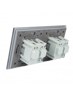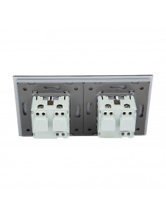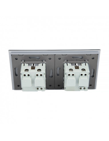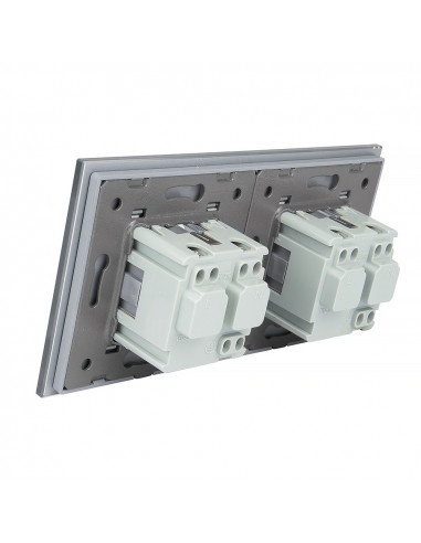 Takie rozwiązanie umożliwia podłączenie dwóch niezależnych urządzeń przy użyciu jednej, zintegrowanej ramki ze szkła, która łączy nowoczesną estetykę z wysoką funkcjonalnością i wygodą użytkowania. Zestaw montowany jest w dwóch standardowych puszkach elektrycznych lub w jednej puszce zespolonej przeznaczonej na dwa mechanizmy. Hermetyczne klapki zapewniają bezpieczne korzystanie z gniazdek w pomieszczeniach o podwyższonej wilgotności oraz w miejscach narażonych na zachlapanie. Doskonale sprawdzą się w kuchni i łazience, gwarantując komfort oraz bezpieczeństwo użytkowania.