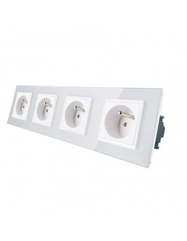 Zestaw składa się z eleganckiej, szklanej ramki Livolo oraz czterech wkładów gniazda pojedynczego WG-71FR- z uziemieniem w bolcu, dopasowanych kolorystycznie do szklanej ramki.