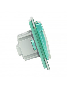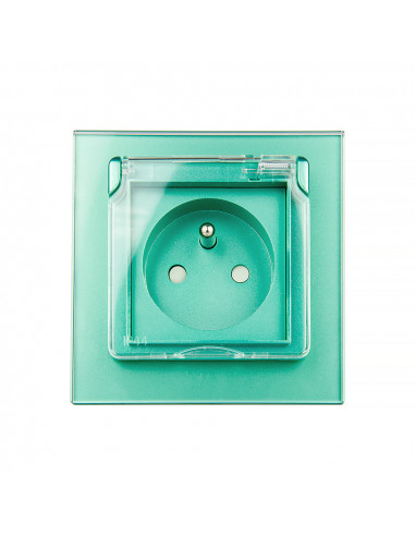 Gniazdo posiada standardowe uziemienie w bolcu. Wszystkie urządzenia oferowane na rynku europejskim i wymagające uziemienia powinny być wyposażone we wtyczki pasujące do tego standardu. Front wykonany z hartowanego szkła kryształowego, niezwykle łatwy do utrzymania w czystości. Idealnie wpasowuje się w nowoczesne oraz eleganckie wnętrza oraz idealnie komponuje się z włącznikami dotykowymi. Gniazdko dzięki klapce idealnie sprawdzi się w pomieszczeniach o wysokim poziomie wilgotności, dzięki temu będzie jeszcze bardziej bezpieczne w użytkowaniu.