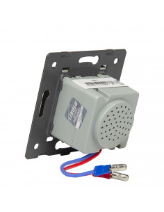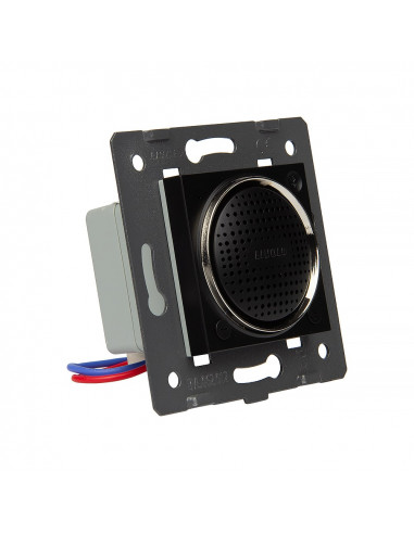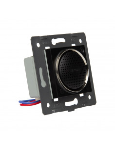 Moduł ma wbudowane dwa przyciski, które służą do sterowania głośnością. Całość dopasowana jest do instalacji w standardowej puszce elektrycznej. Moduł pasuje do wszystkich ramek i paneli, z wyciętymi otworami na gniazdo, dostępnymi w naszej ofercie.