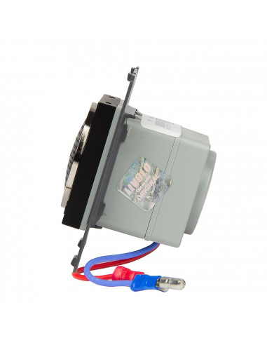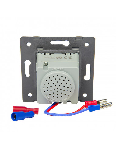 Moduł głośnika zawiera dwa przewody w kolorze czerwonym - zasilanie oraz niebieskim - przewód neutralny. Ważne jest, aby przewody w puszce były odpowiednio podłączone z przewodami głośnika, w przeciwnym razie może on zostać uszkodzony. Do zestawu dołączone są dwa adapterki, które ułatwią podłączenie kabli z głośnikiem na wcisk.