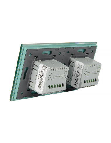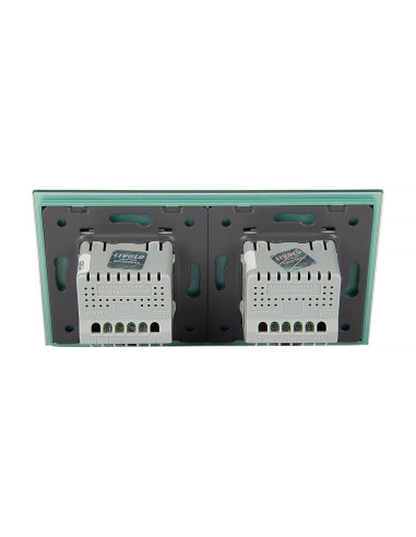 Włącznik dotykowy Livolo do dwóch puszek. Dwa podwójne przyciski pozwolą na sterowanie aż czterema źródłami światła z jednego panelu dotykowego. Front wykonany jest ze szkła hartowanego, co sprawia, że nasze produkty są odporne na zarysowania i łatwe w utrzymaniu w czystości. Istnieje możliwość montażu tego włącznika w układzie pionowym, co pozwoli na idealne dopasowanie produktu do instalacji elektrycznej.
