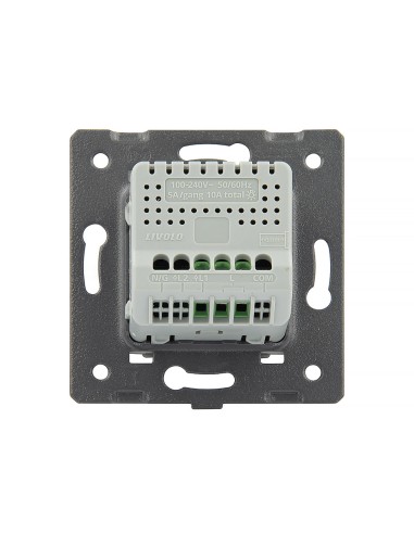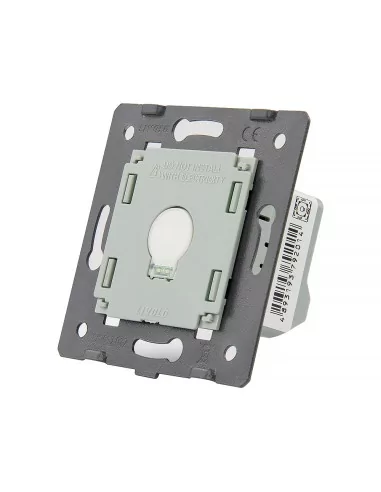 Moduł pojedynczego dotykowego włącznika Livolo WW-C701H to rozwiązanie impulsowe, które zamyka obwód poprzez odbiornik prądu, dzięki czemu nie wymaga przewodu neutralnego (N) do poprawnego działania. Produkt pasuje do standardowych puszek elektrycznych.