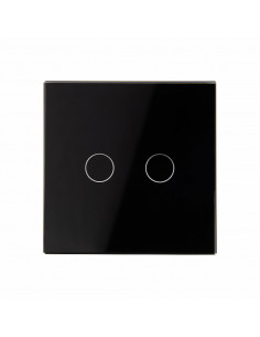 To rozwiązanie umożliwia sterowanie dwoma niezależnymi źródłami za pomocą jednego, eleganckiego panelu szklanego. Całość montowana jest w standardowej puszce elektrycznej. Włącznik zasilany jest prądem stałym 12-24V DC. Są to włączniki dedykowane do instalacji o niskim napięciu lub zasilanych skrętką. Przyciski mają podświetlenie, na niebiesko, kiedy jest wyłączony oraz na czerwono, gdy jest włączony.