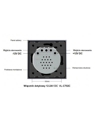 Zestaw składa się z eleganckiego, szklanego panelu dotykowego Livolo 702 oraz jednego włącznika podwójnego niskonapięciowego WW-C702C.