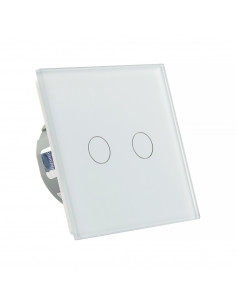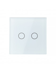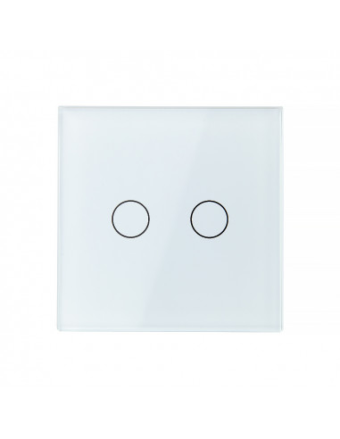 To rozwiązanie umożliwia sterowanie dwoma niezależnymi źródłami za pomocą jednego, eleganckiego panelu szklanego. Całość montowana jest w standardowej puszce elektrycznej. Włącznik zasilany jest prądem stałym 12-24V DC. Są to włączniki dedykowane do instalacji o niskim napięciu lub zasilanych skrętką. Przyciski mają podświetlenie, na niebiesko, kiedy jest wyłączony oraz na czerwono, gdy jest włączony.