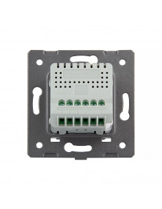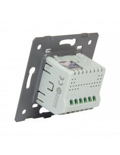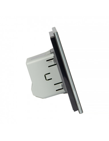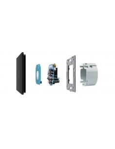 To rozwiązanie umożliwia sterowanie jednym źródłem światła za pomocą jednego, eleganckiego panelu szklanego. Całość montowana jest w standardowej puszce elektrycznej. Włącznik zasilany jest prądem stałym 12-24V DC. Są to włączniki dedykowane do instalacji o niskim napięciu lub zasilanych skrętką. Naciśnięcie przycisku generuje impuls elektryczny, który pozwala na sterowanie przekaźnikiem. Włącznik posiada separowane styki prądowe, dzięki czemu może wysterować dowolne podłączone niskie napięcie. Dopuszczalne obciążenie styków to 5A.