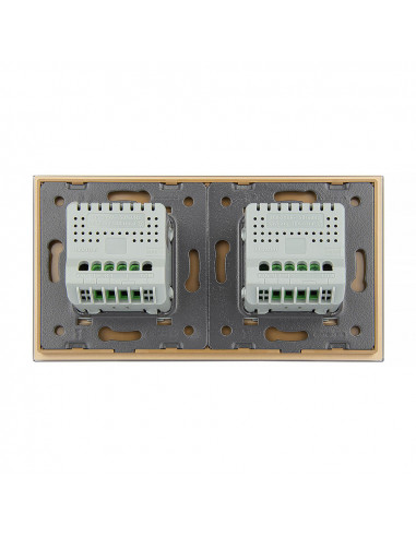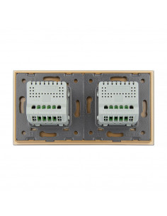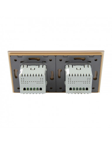 Włącznik dotykowy Livolo do dwóch puszek. Dwa podwójne przyciski pozwolą na sterowanie aż czterema źródłami światła z jednego panelu dotykowego. Front wykonany jest ze szkła hartowanego, co sprawia, że nasze produkty są odporne na zarysowania i łatwe w utrzymaniu w czystości. Istnieje możliwość montażu tego włącznika w układzie pionowym, co pozwoli na idealne dopasowanie produktu do instalacji elektrycznej.