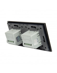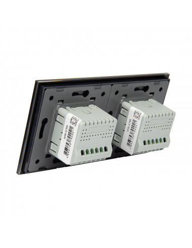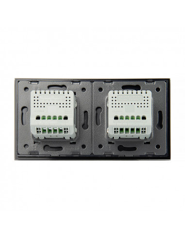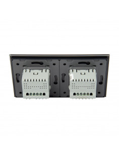 Włącznik dotykowy Livolo do dwóch puszek. Dwa podwójne przyciski pozwolą na sterowanie aż czterema źródłami światła z jednego panelu dotykowego. Front wykonany jest ze szkła hartowanego, co sprawia, że nasze produkty są odporne na zarysowania i łatwe w utrzymaniu w czystości. Istnieje możliwość montażu tego włącznika w układzie pionowym, co pozwoli na idealne dopasowanie produktu do instalacji elektrycznej.