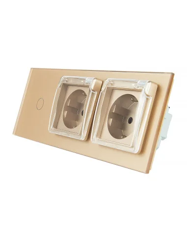 Włącznik dotykowy pojedynczy i dwa gniazda hermetyczne Złoty