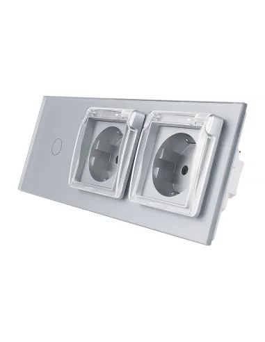 Włącznik dotykowy pojedynczy + dwa gniazdka hermetyczne LIVOLO 701GG Szary