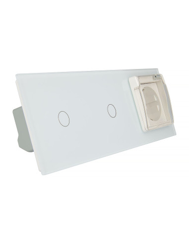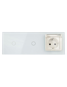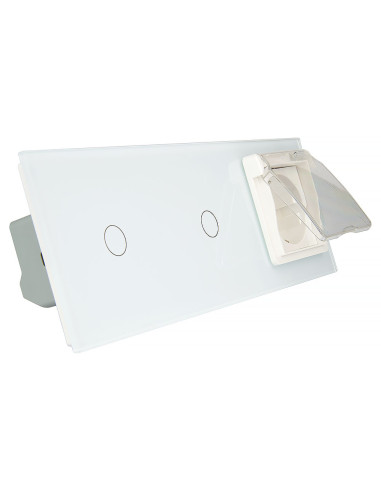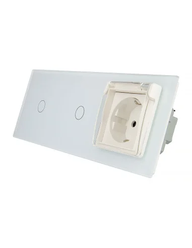 Włącznik dotykowy podwójny i jedno gniazdko hermetyczne Biały