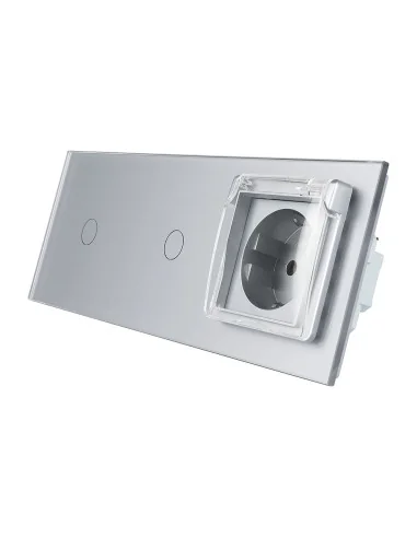 Włącznik dotykowy podwójny i jedno gniazdko hermetyczne Szary