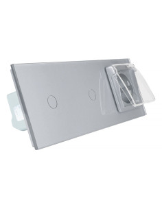 Zestaw składa się z eleganckiego, szklanego panelu dotykowego Livolo, dwóch włączników pojedynczych WW-C701, jednego wkładu gniazda pojedynczego WG-71EU-S, dopasowanego kolorystycznie do szklanego frontu oraz klapki hermetycznej.